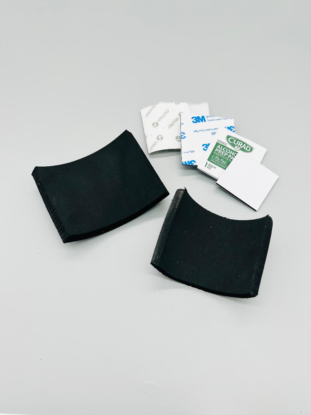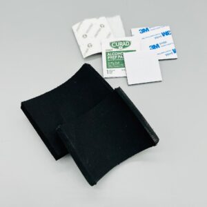 Made of closed cell foam material used in the same manufacturing process of our holsters with thousands of uses. Long lasting and extremely soft. Also included are pieces of commercial grade “hook and loop” attachments, double sided 3m tissue tape and Curad alcohol prep pads.