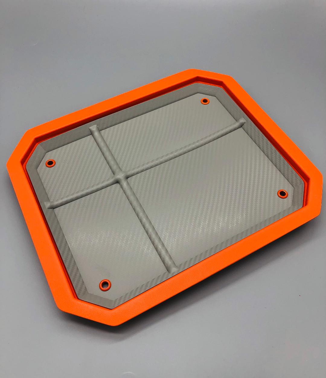 A custom dual layer EDC tray made of kydex. Includes Neptune Concealment Trident Logo. Your choice of colors for the Front Plate (top color) and Back Plate kydex color (backing tray color). Handmade by veterans in the USA.