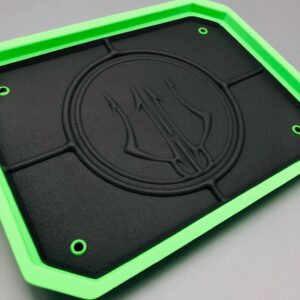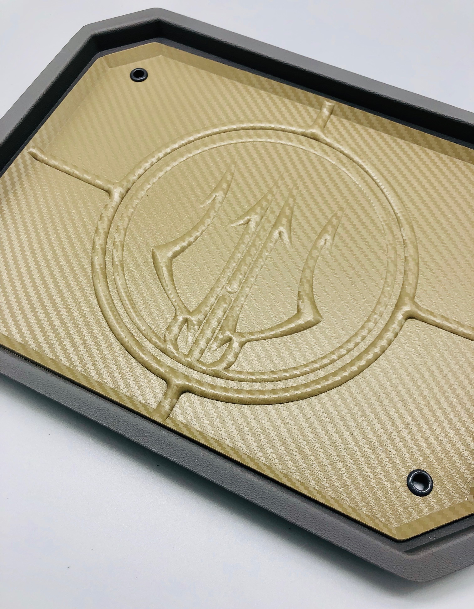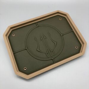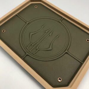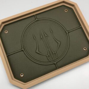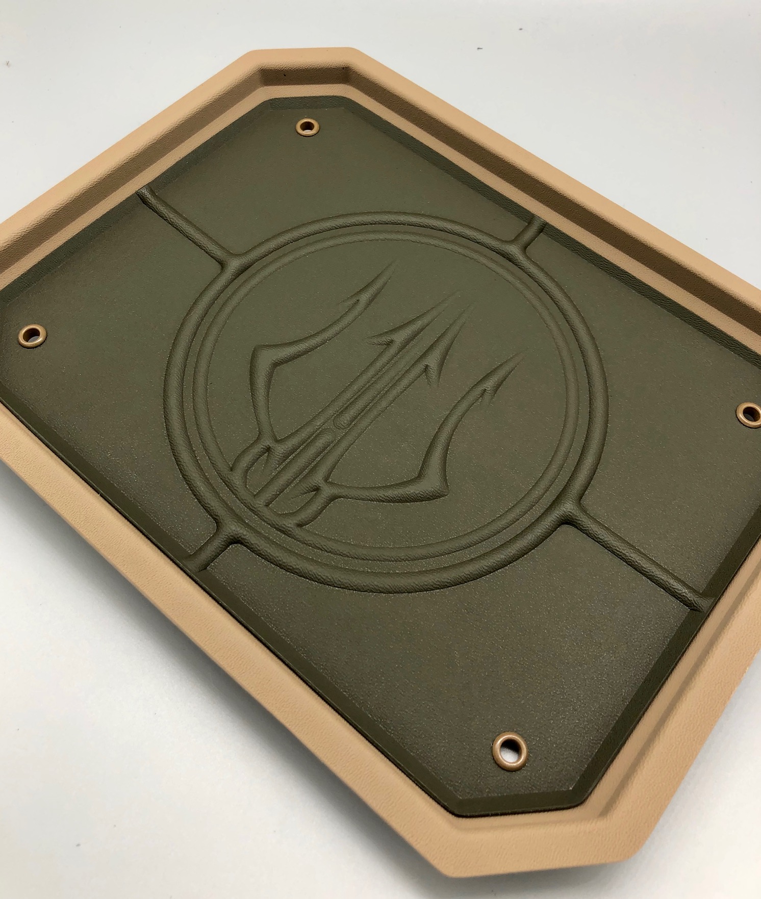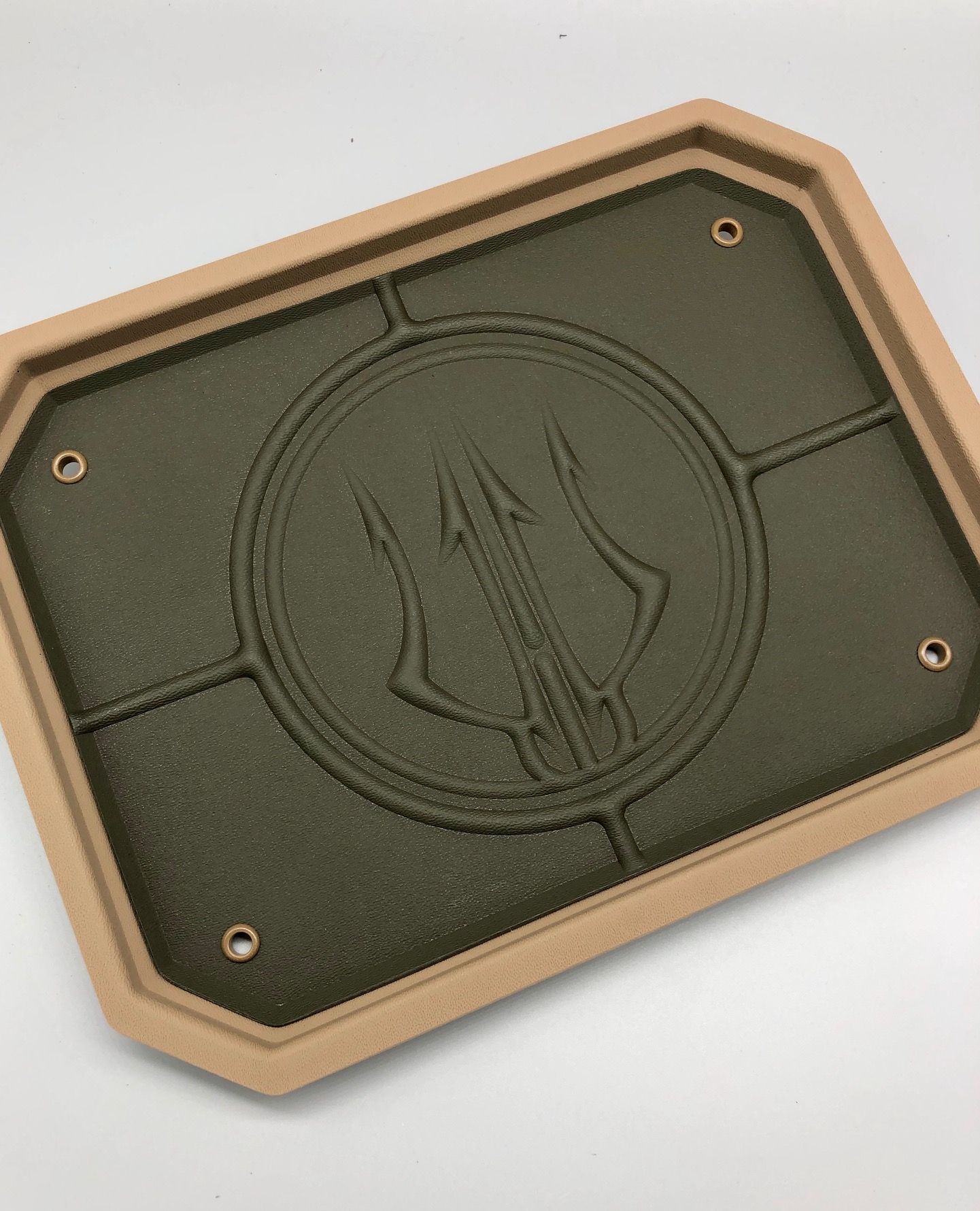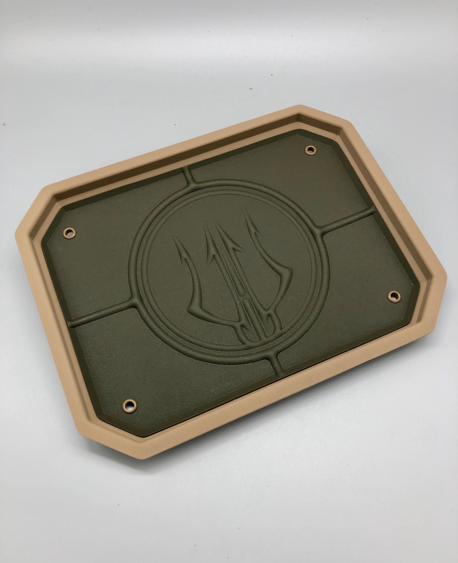 A custom dual layer EDC dump tray made of kydex. Includes Neptune Concealment Trident Logo. Your choice of colors for the Front Plate (top color) and Back Plate kydex color (backing tray color). Handmade by veterans in the USA.