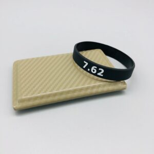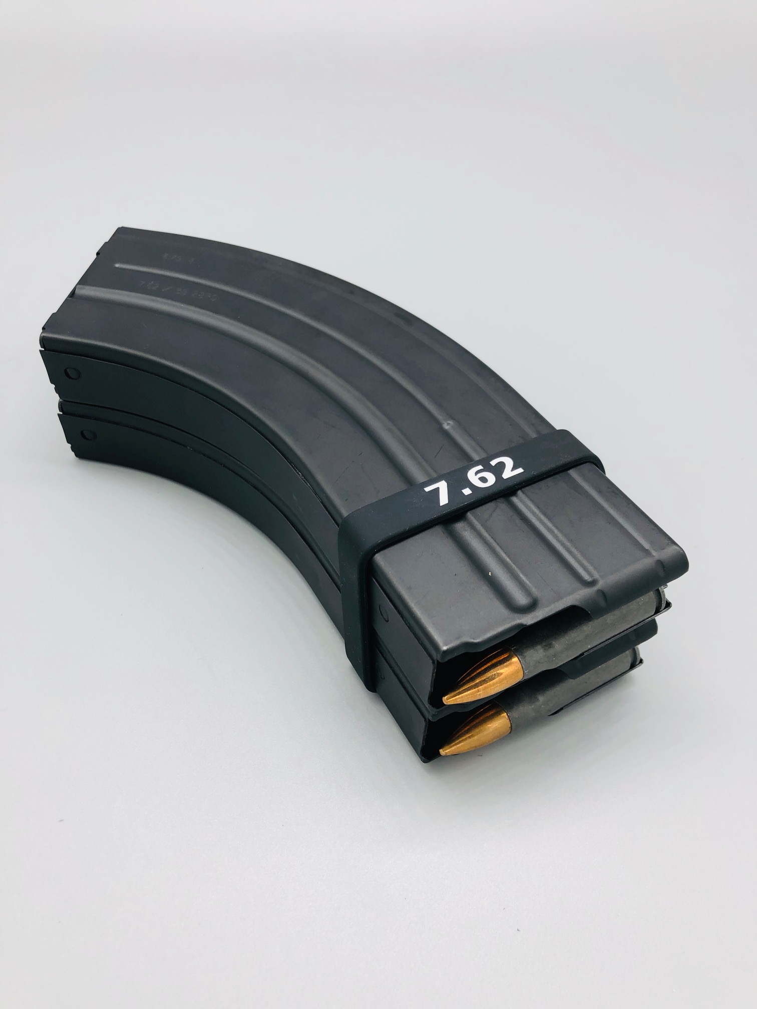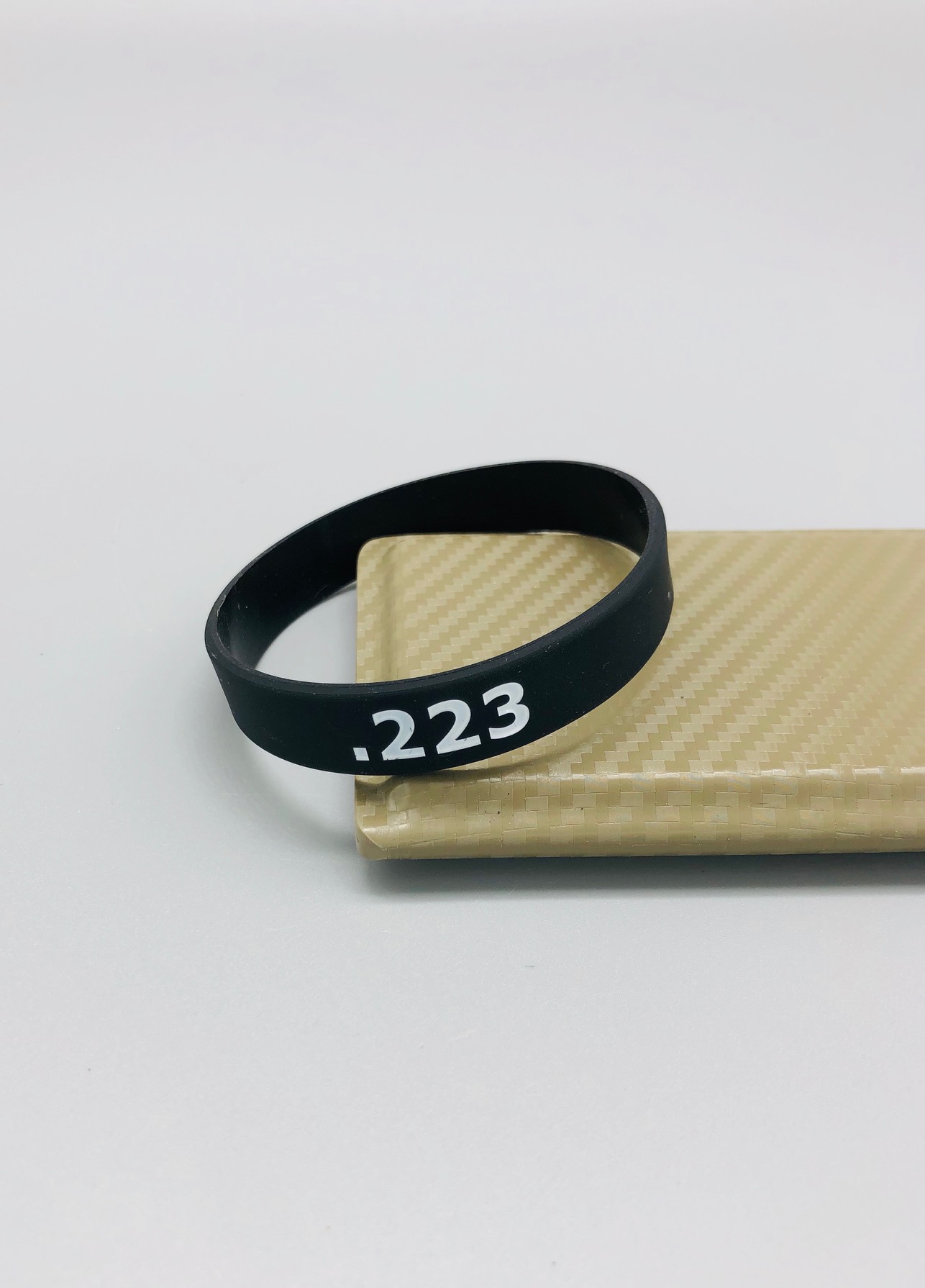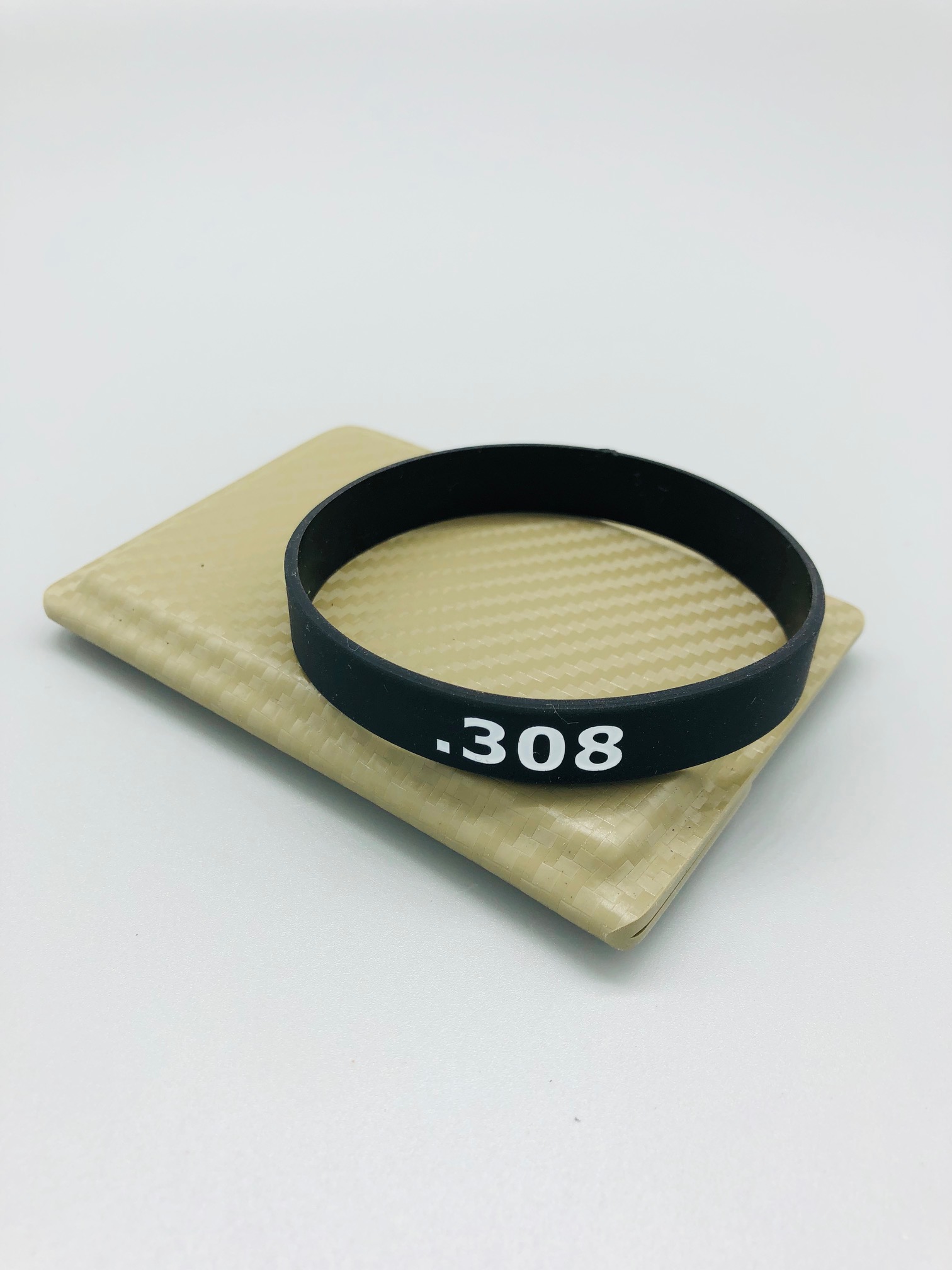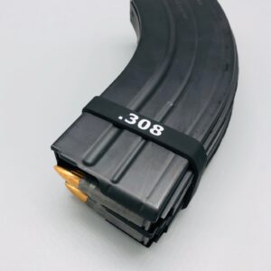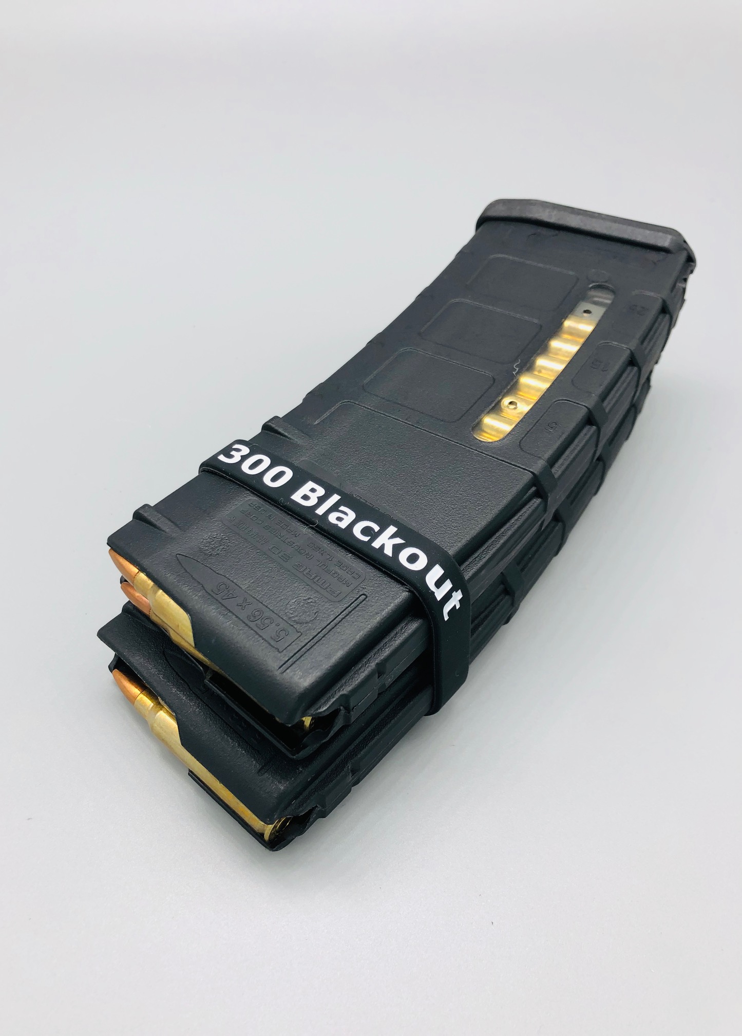 Mag ID bands. Identify your mags by caliber or wear on your wrist. These larger silicone bands will fit around 2 standard sized mags or a reasonable sized wrist. Larger bolt action calibers ( ie. 7.62, Creedmoor, etc.) may fit around 1 mag. See corresponding pictures. The bands are Black and have lettering/numbering that is recessed and filled in with white ink.