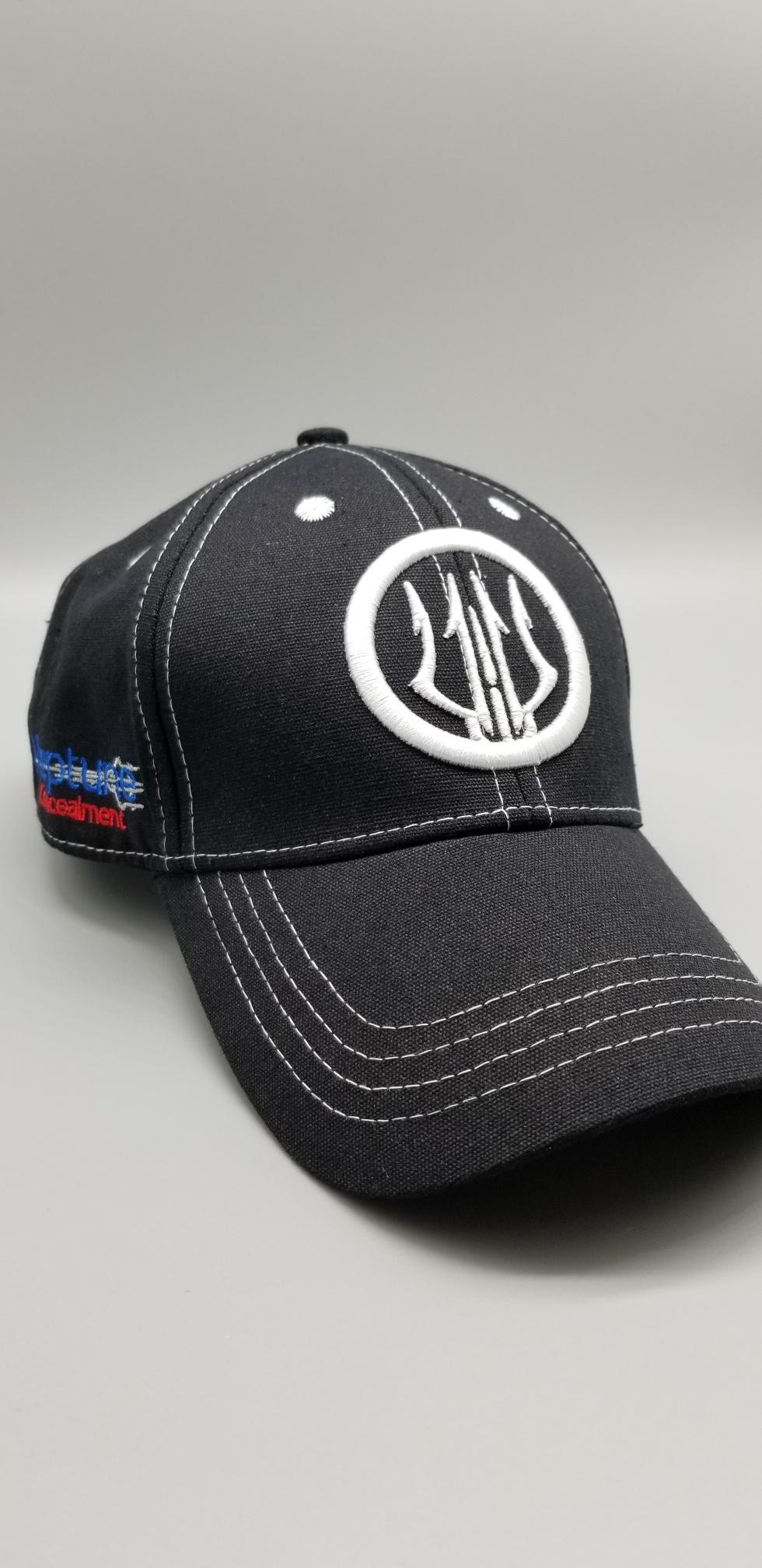 NEW! Neptune Concealment’s trident logo baseball hat. Black hat with white stitching. Raised 3D trident logo. Embroidered with the Neptune Concealment logo on the side. Has an adjustable velcro back strap; one size fits most.