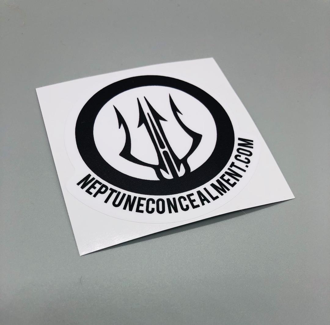 Neptune Concealment logo decal stickers. Black lettering, 3″ x 3″ in size.