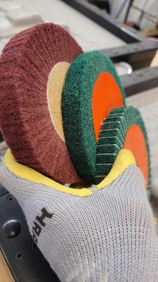 The abrasive cloth mixed insert wheel. Same material just with the added rigidity, as well as longevity keeping the wheel edges, square longer.