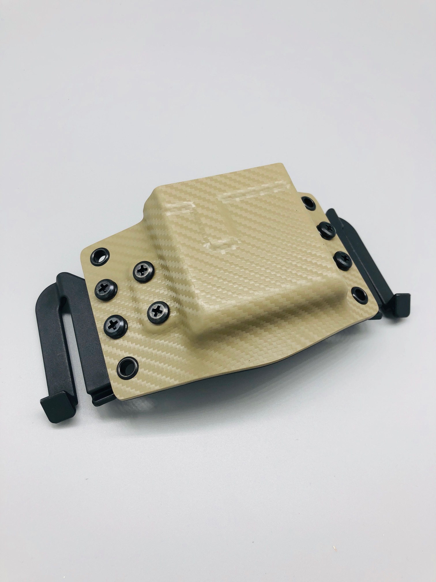 Kydex Color | Elephant Gray, Police Blue, Firefighter Red, Safety Orange, Marine Green, Infantry Green, FDE Tan Carbon Fiber, Desert Tan Carbon Fiber, Coyote Carbon Fiber, Black Carbon Fiber, Black, Olive Drab, Spring Tan, Fall Tan, Zombie Green, Zombie Green Carbon Fiber, Bubble Gum Pink, Neon Yellow, Gray Carbon Fiber, Tiffany Blue, Tiffany Blue Carbon Fiber, White, Olive Drab Carbon Fiber, Jade Carbon Fiber |