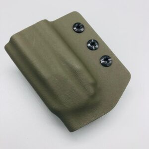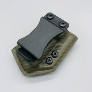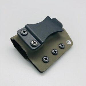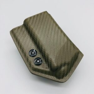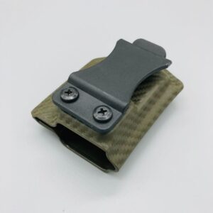Single mag pouch for inside the waistband. This custom and handmade kydex magazine pouch comes in a variety of colors and models. Includes Fomi clip for inside the waistband carry. Made in the USA.