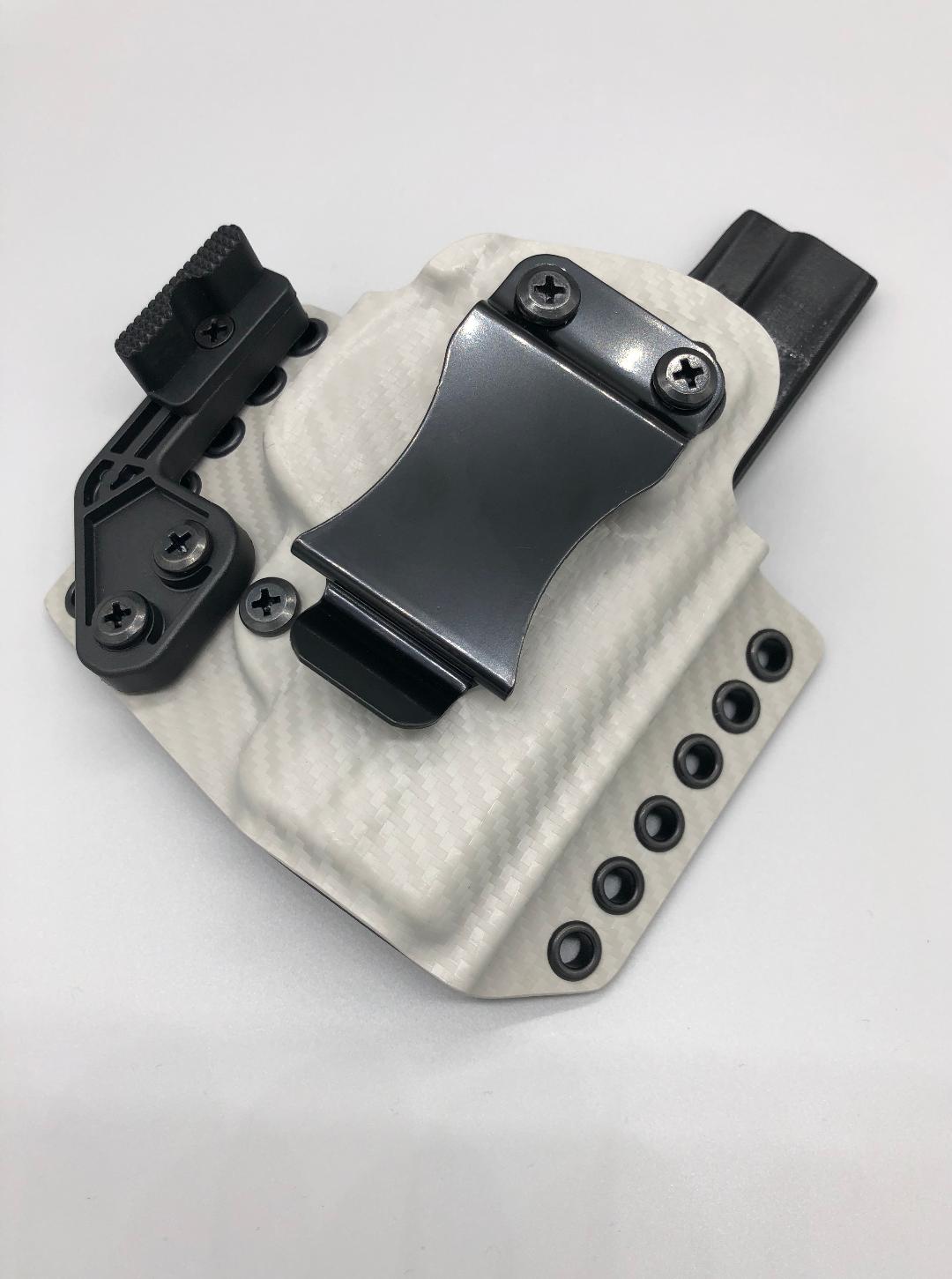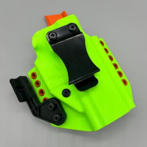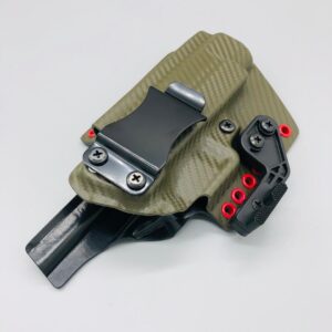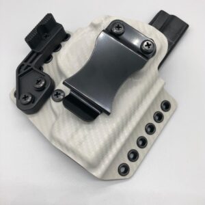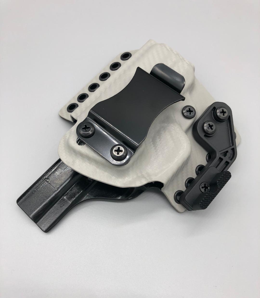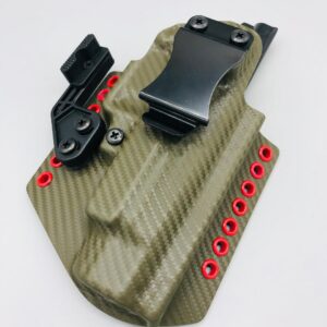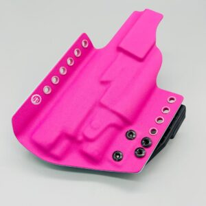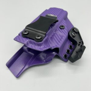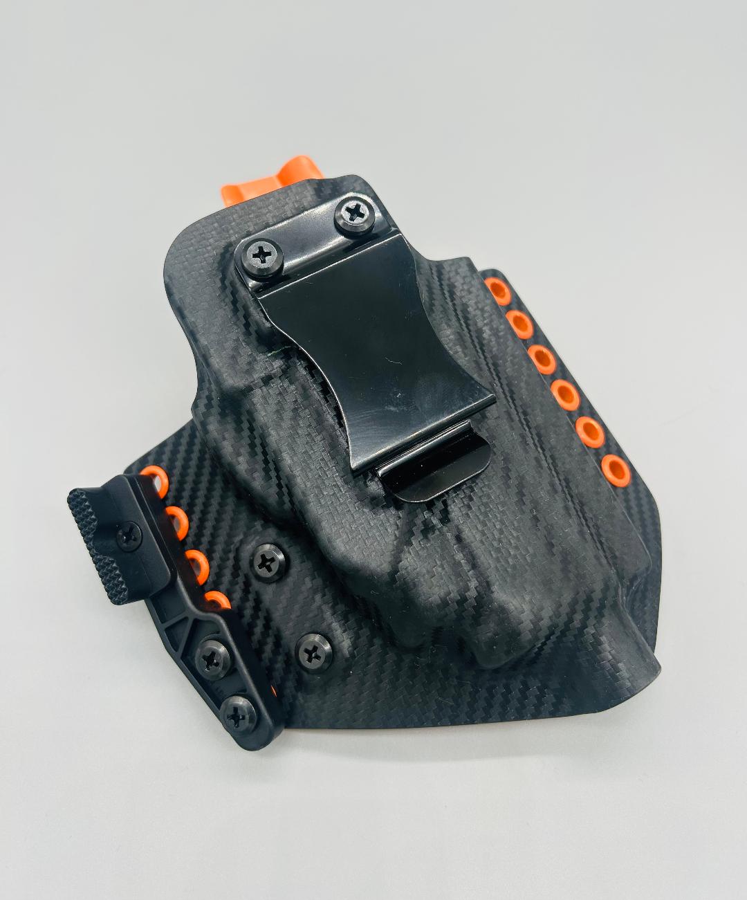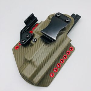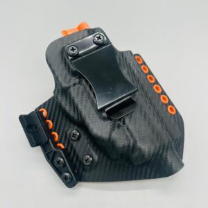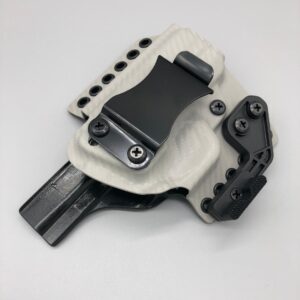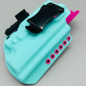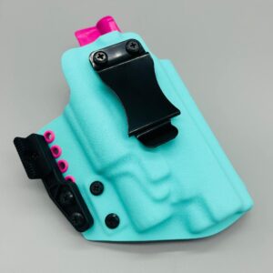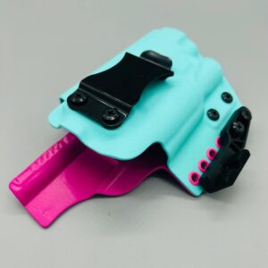 Theseus Series dual colored kydex holster for inside or outside the waistband. Your custom holster comes with two tone coloring and your choice of holster placement and clip type. Please contact us about any additional models not seen in the drop down list. Other models available. Handmade in the USA.