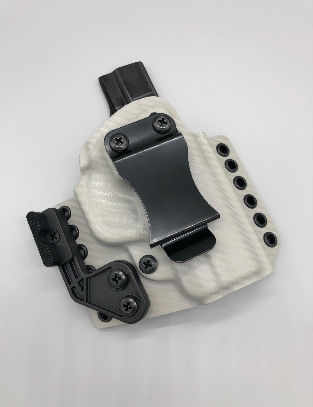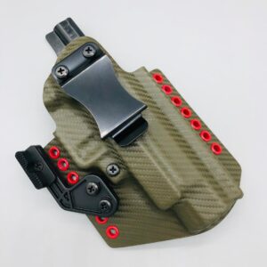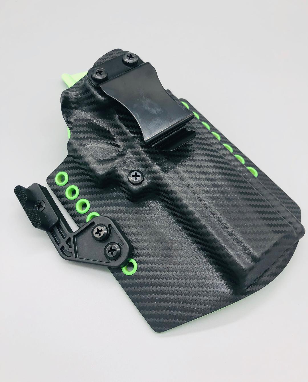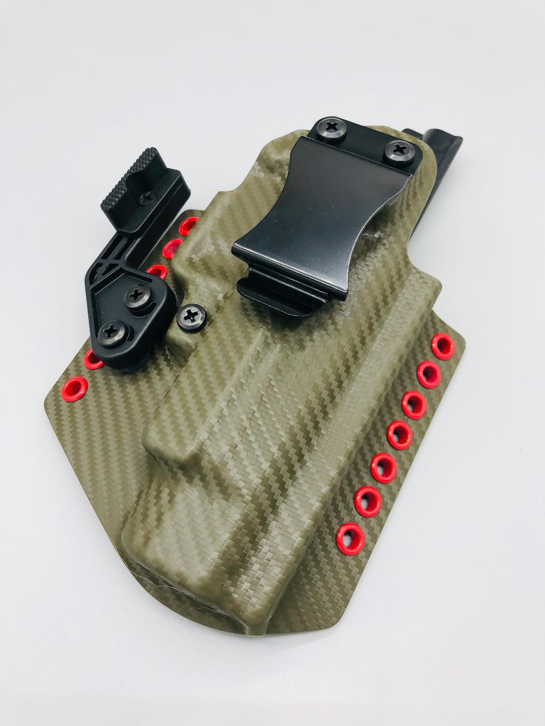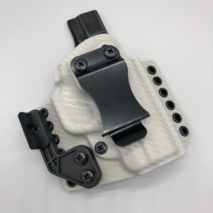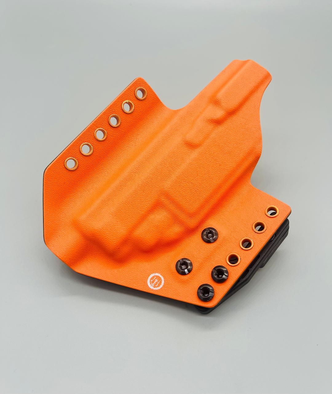 Theseus Series dual colored kydex holster for inside or outside the waistband. Your custom holster comes with two tone coloring and your choice of holster placement and clip type. Please contact us about any additional models not seen in the drop down list. Other models available. Handmade in the USA.