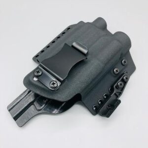 After about 3 weeks of EDC I can say this holster is top notch. Not many holsters can pull double duty for IWB and OWB well, but this one does. Had one done for my FNX-45 Tac and everything from the raised sights, RMR, and longer barrel customizations were perfectly done. While concealed it is quite large being an FNX-45 and the “wings” where the grommets are poke into me slighty while AIWB, but hasn’t been too uncomfortable and mainly due to how big this gun is. Comes with plenty of extra hardware for adjustment, definitely a must buy.