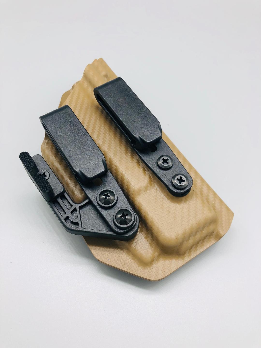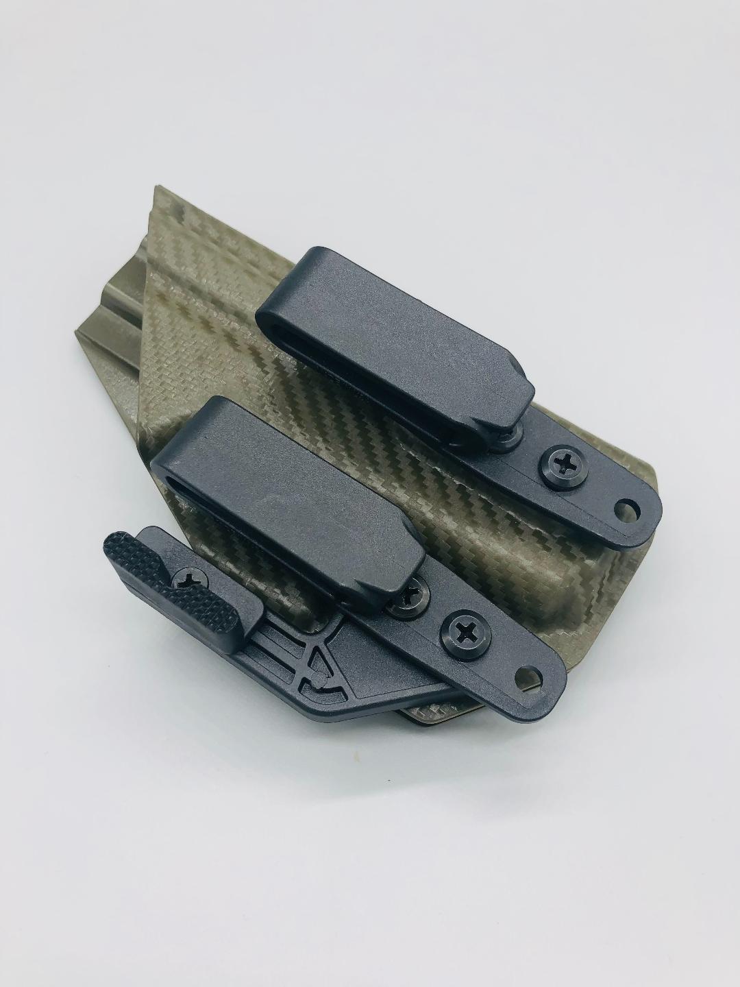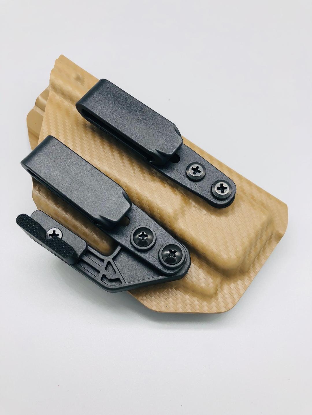 Triton 2.0 inside the waistband kydex holster. Includes 2 grip hooks to allow carry with and without a belt. Adjustable Mod Wing attached to minimize printing. Comes in a variety of colors. Handmade in the USA. Please contact us about any additional models not seen in the drop down list.