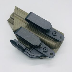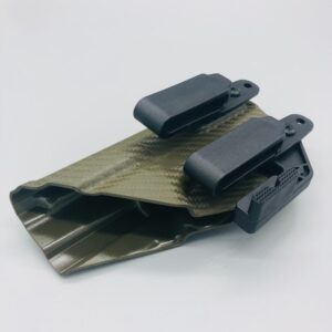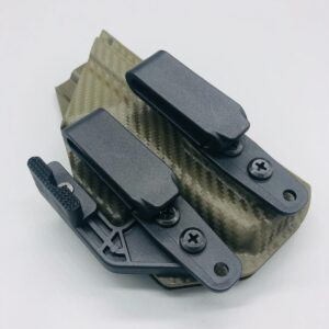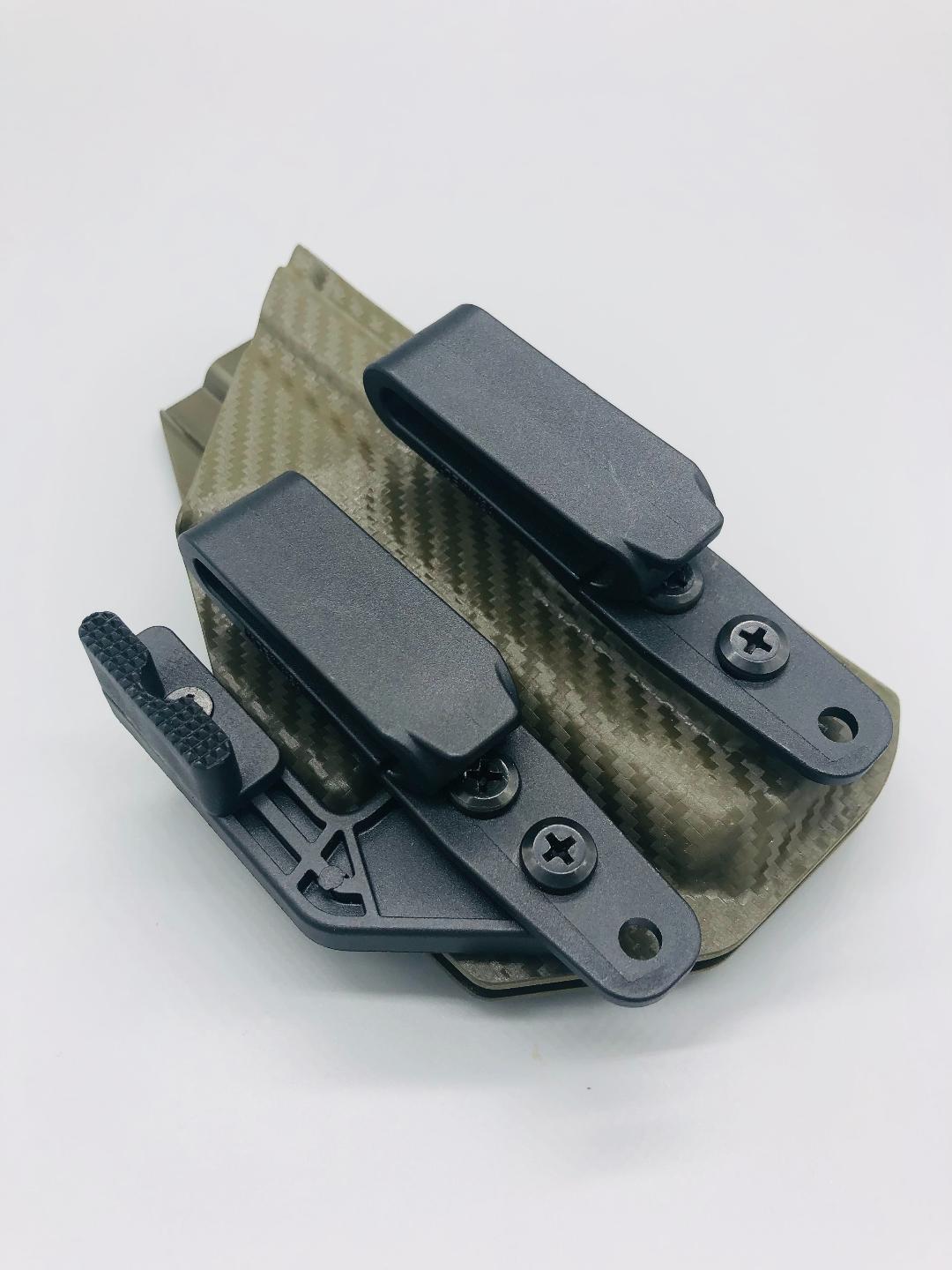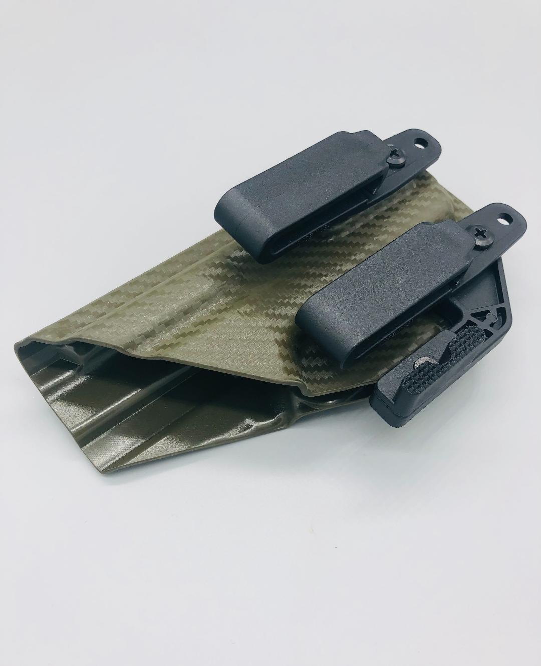 Triton 2.0 inside the waistband kydex holster. Includes 2 grip hooks to allow carry with and without a belt. Adjustable Mod Wing attached to minimize printing. Comes in a variety of colors. Handmade in the USA. Please contact us about any additional models not seen in the drop down list.