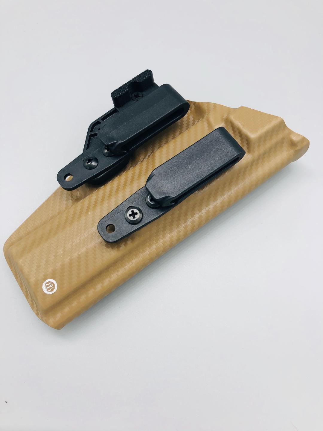 Belt Clips: You can add Belt Clips to the holster – We offer a Universal Belt Clip and a Monoblock Belt Clip