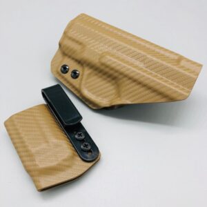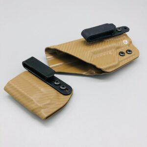 This is the first holster I have bought, and will definitely be a lifelong customer. Starting with the price, it’s the best budget out there. I have friends with 35 dollar holsters and they’re garbage. The quality of these holsters are top notch. super comfortable against your skin there’s no sharp spots or anything rough. after adjusting the clip position it fits perfect and is hardly noticeable. They have just about any color kydex you could want, I went with tan carbon fiber, which is slightly darker than i expected but I still love the design. The retention was already set pretty close but I tightened it up a bit and now it clicks in and I can shake it and it stays put. The mag holster needed tightening a lot more but now that’s just as solid. Very happy and will definitely be back for future holster purchases.