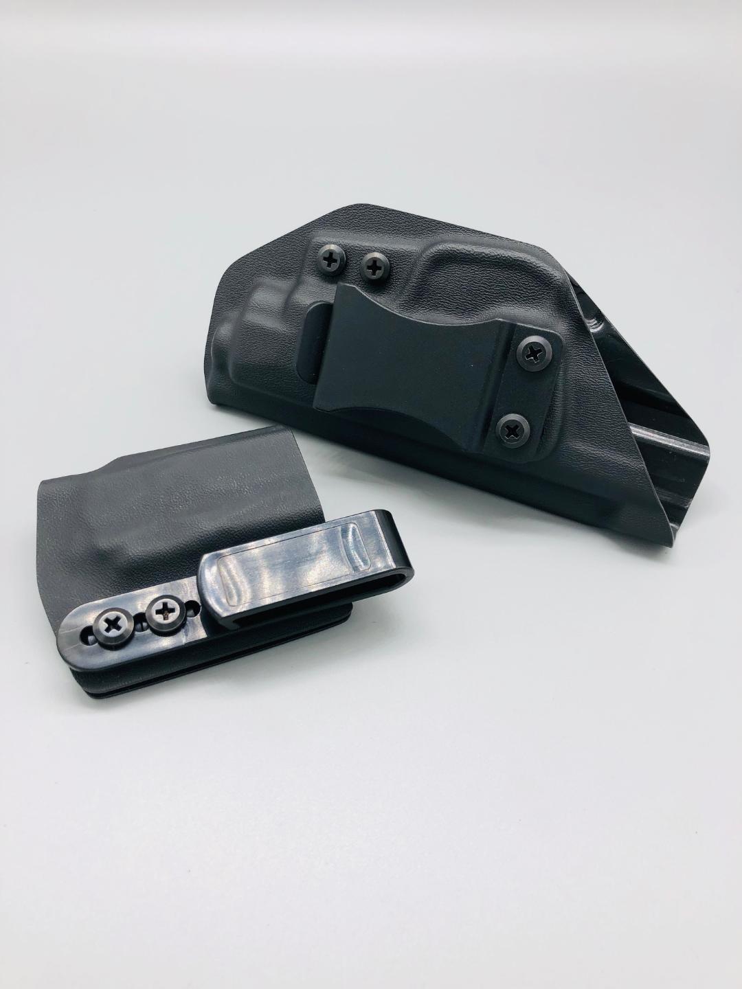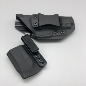 Trident Series kydex inside the waistband holster with matching mag pouch. Comes in a variety of colors with your choice of IWB clip on the holster. Please contact us about any additional models not seen in the drop down list. Handmade in the USA.