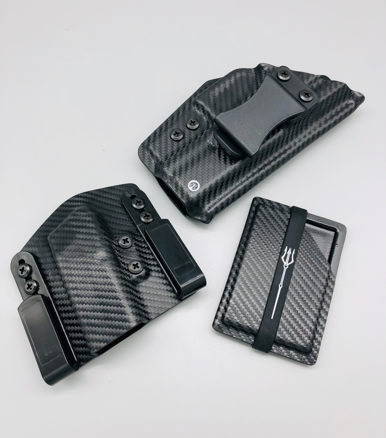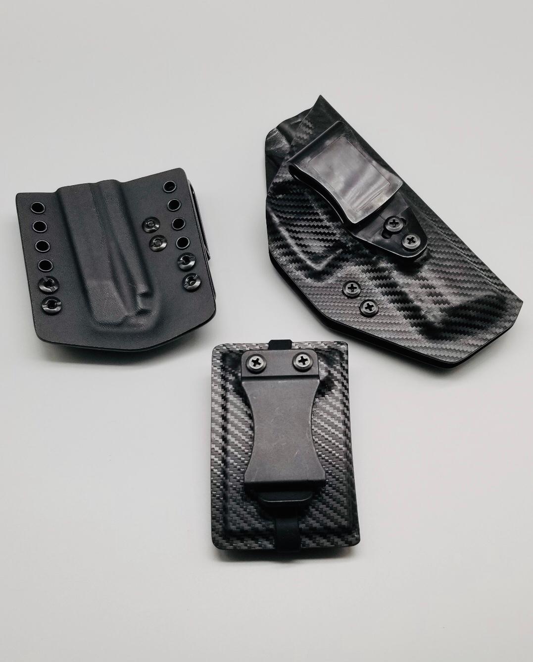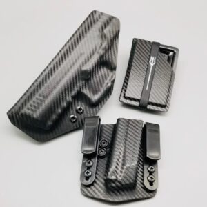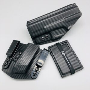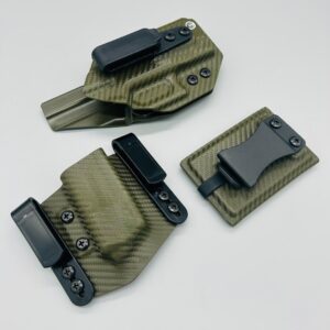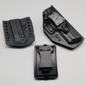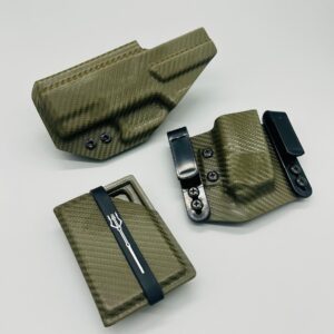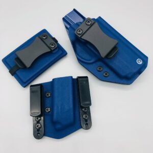 Bundle deal with Triton Series holster (inside the waistband) single magazine pouch and matching kydex wallet. Your choice of many colors as well as three adjustable clip options for your holster. Wallet has a clip option for inside the waistband carry as well. Please contact us about any additional models not seen in the drop down list. Other models are available. Handmade in the USA.