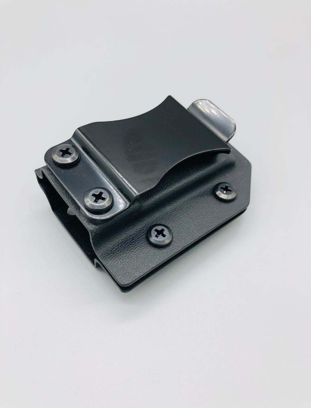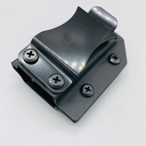 Universal single mag pouch for inside the waistband. This custom and handmade kydex magazine pouch comes in a variety of colors and models. Includes metal flat clip for inside the waistband carry. Made in the USA.