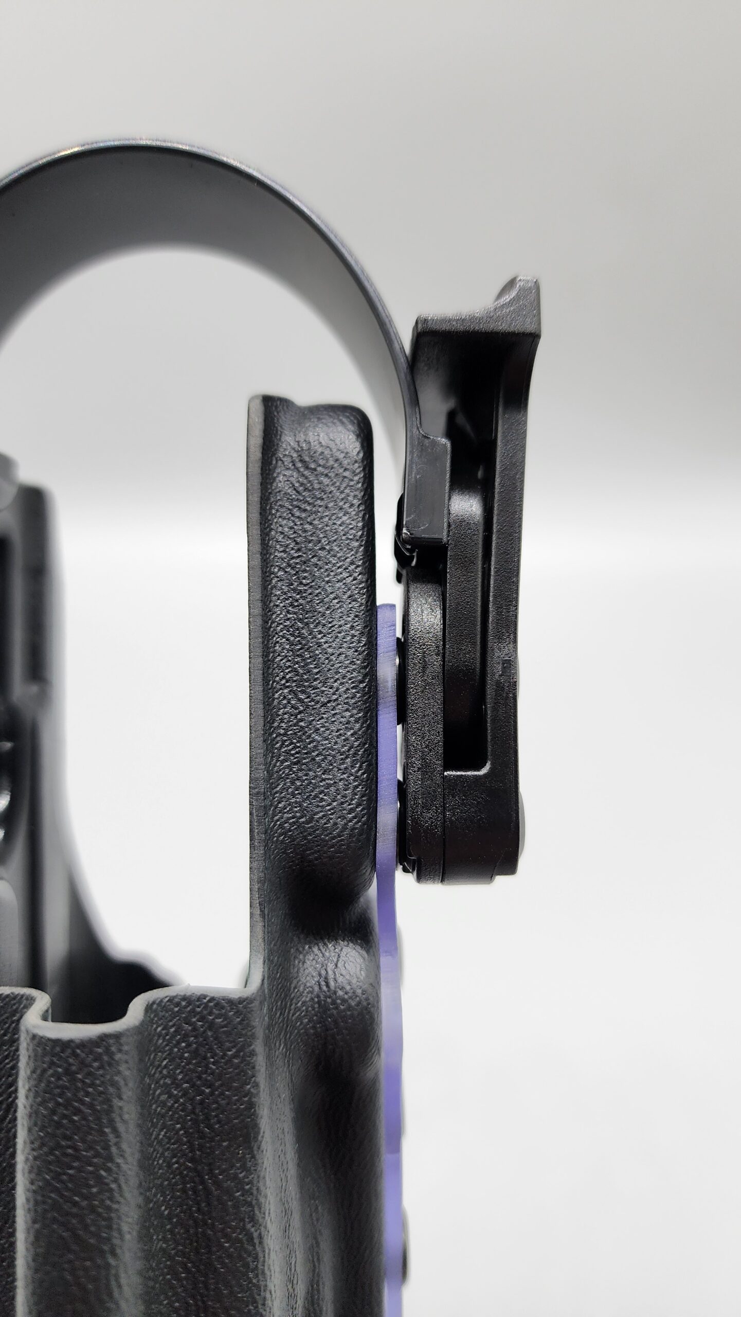 NEW! Elevating the retention level from Level 1, the Level 2 Hood features an additional active mechanical element with a thumb break release mechanism. Catering to law enforcement or military customers with stringent retention requirements, the ultimate solution.